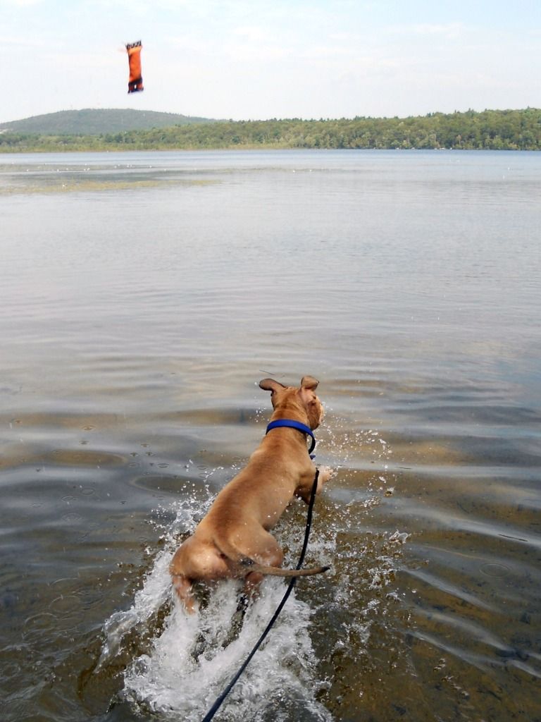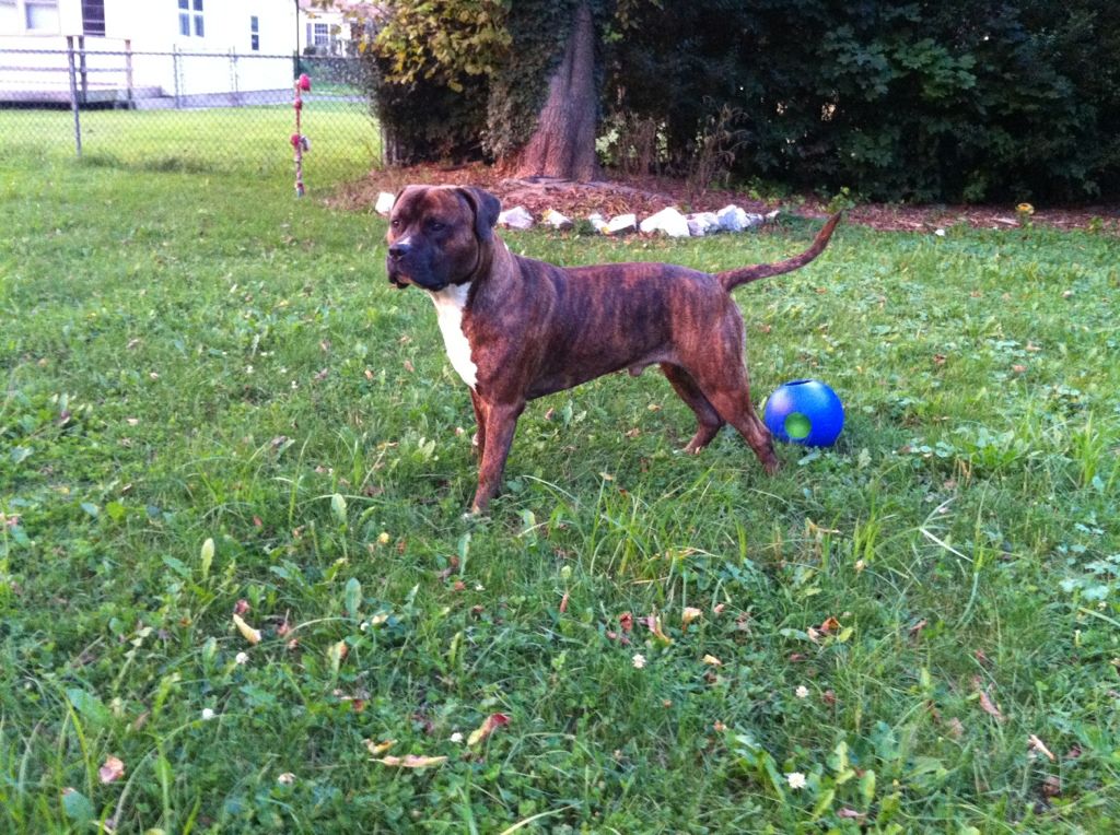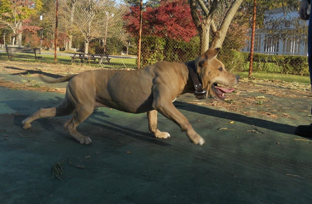 I have a pit bull puppy who is almost 7 months old. He isn't the most hyper dog in the world but it seems like he tires out too quickly and always has since I got him. (which was at 8 weeks old) I feed him the best food I can afford on my budget and I keep him healthy. Maybe he's just growing still and will have more energy when he gets older? He has no problem running until he can't stand when playing with other dogs but when I'm playing with him and his toys, walking him or even trotting him along side my bike he lags behind me. Even if I want to just run him down the block, he'll lag behind me and go as slow as he can. It's not like I exercise him 24/7 and expect him to give me more, I'd just like enough energy to go on a quick jog or walk. Do you think he'll ever have more energy or am I stuck with a future couch potato?