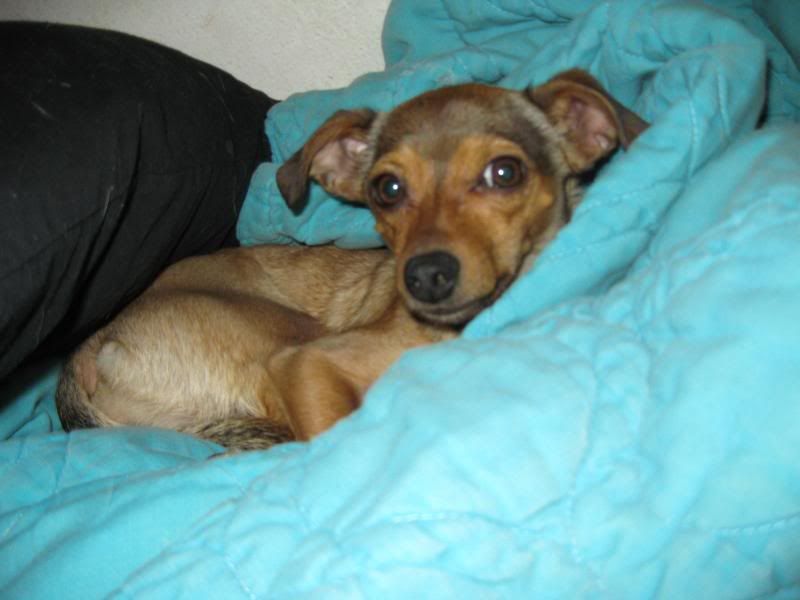 It was a late night at the hospital when we got a sick pet in. A girl, younger, about 19 and her younger brother came in with a small, weak 2 month old chihuahua puppy. They said the puppy was having vomiting and diarrhea. We offered her a parvo test, and she declined, having no money at all. She was told, if it is Parvo, the chances of survival were slim. She was waiting at the front desk to check out when our receptionist over heard her phone conversation with a boyfriend. She was telling him, 'Well, im just going to throw her out of the car on the way home, yea, well, she's sick so im just going to get rid of her.' The receptionist ran to the back and told us, 'Hey, shes going to throw the dog out of her car on the way home!' We went up front, and offered her another option. We said to her, if you can't afford treatment, you can sign her over and we will take care of her bill and adopt her out.' I didn't have a dog at the time, just my cat and 2 ferrets, so I volinteered to take her, and keep her. The girl signed the papers and cried a bit first. Which I find weird. We did a parvo test, and it came back positive, a light positive which means we porbably caught it early on. I remember my boyfriend coming into the hospital, and I said to him, 'Babe, we have a dog.' He said in return 'WHAT? We have a dog?' I handed him the sick puppy and he fell in love. To this day, little Isis, at her biggest weight now of 8.2 pounds, is his favorite dog. I told john (my boyfriend) to not be suprised if we woke up one day, and she has passed. Parvo can look like its improving, and then take a turn for the worst. And she was very very sick. I set my alarm clock to wake up every 3 hours to force feed her pedialtye for three days. I got no sleep, and John said to me, 'I had no idea I was dating such a caring person' as I continued my fight to keep Isis alive. She was only sick for a few days and she made a remarkable recovery. Her name tag on her collar proudly states 'I survived Parvo.' Isis health began to improve and her true colours were starting to show. It wasn't pretty. Being the little ankle bitter she is, she was cage agressive, food agressive, treat posesive, everything. One time she was chewing on a bone and John was playing with her ans she went for his face. Throught time, we were able to break her of her bad habbits. Im not fond of little dogs, but she came to me the day before Thanksgiving, and she will be the only little dog in my life. She is never babied like people like to do with little dogs, and she is durable as all hell. She will go mountain climbing with us, to the lake, she can do it all. Here are some pics of my little dog. She is 1 year and 4 months old now. ![]() ![]() ![]() ![]()